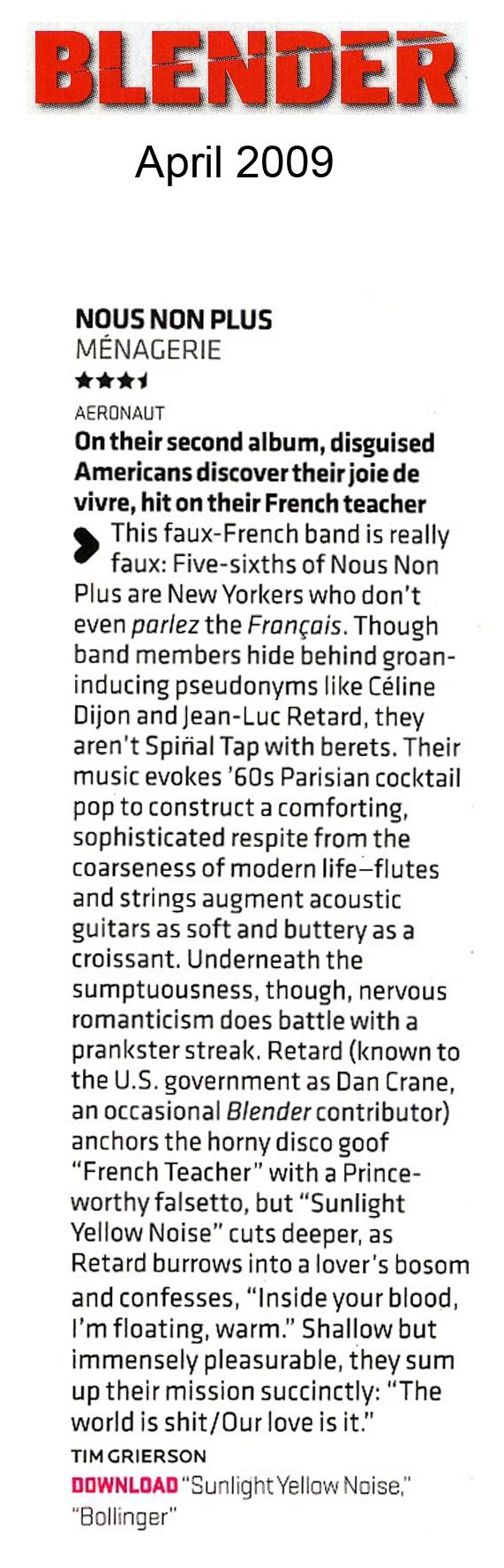 « What seems to have happened is that a fake French pop band became a (more) real, attorney-free rock band—which is much better, anyway. » — LA Weekly